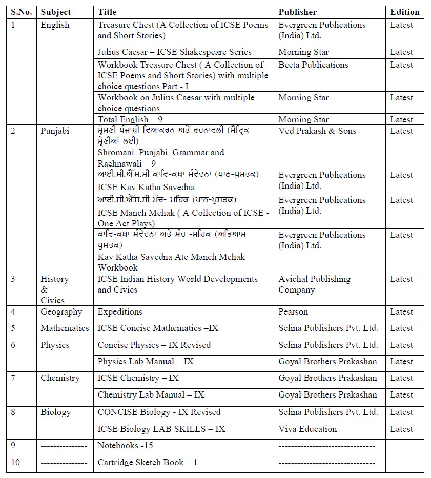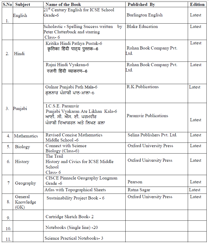Booklist (Session 2026-27)