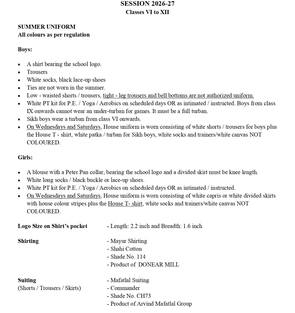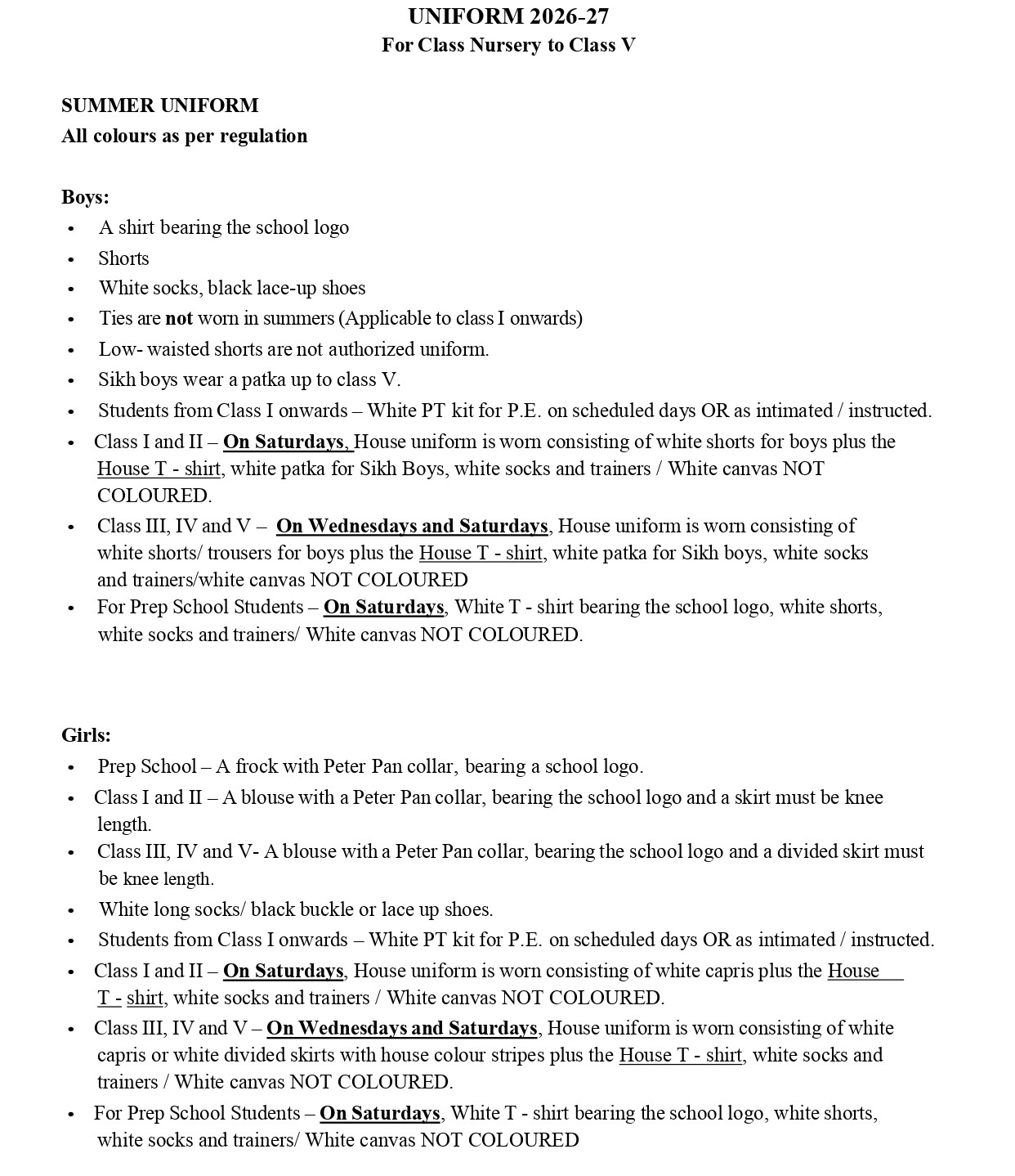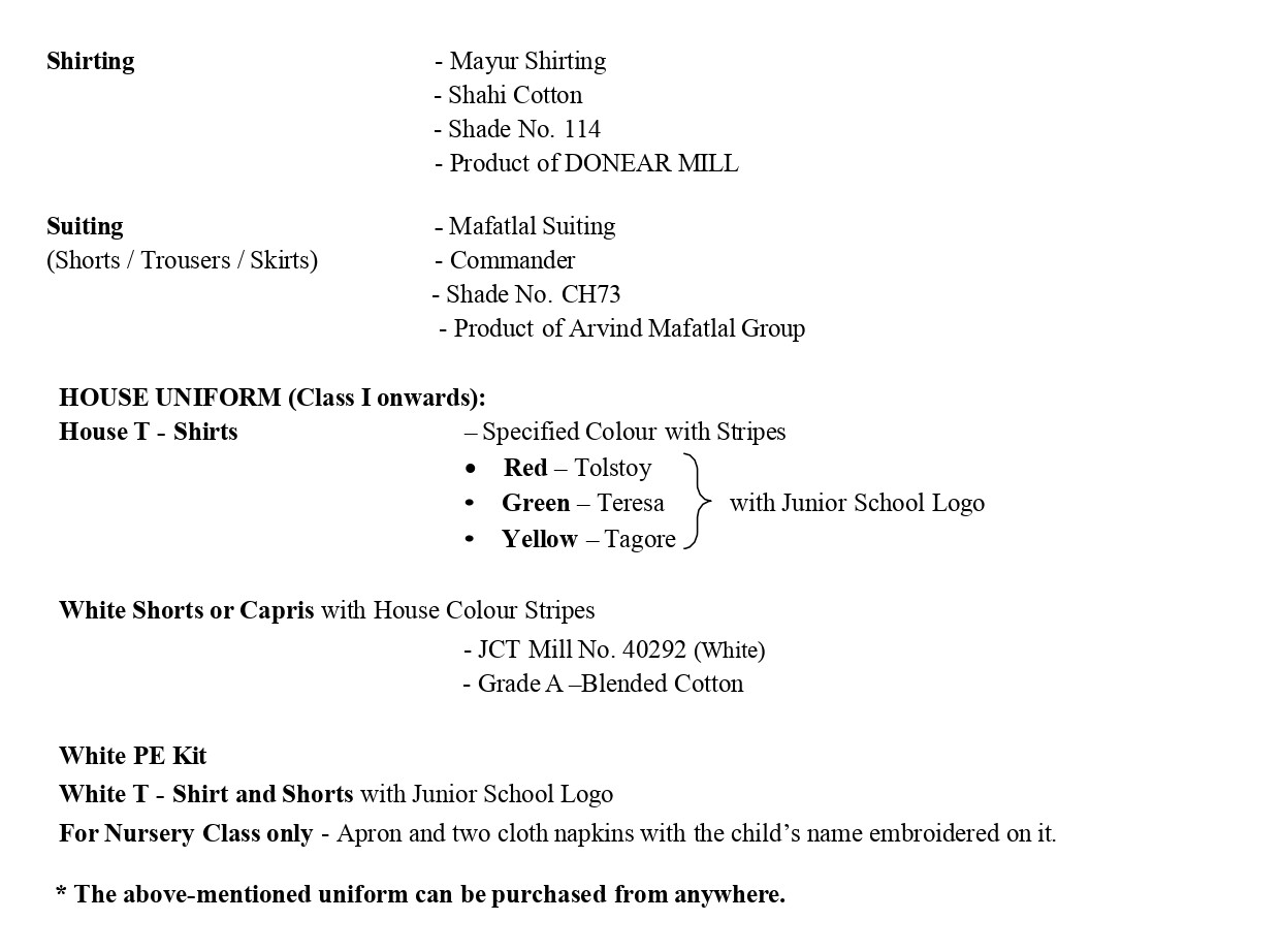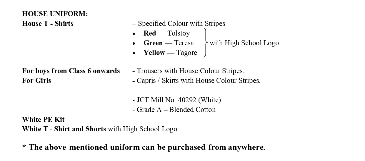 - School Uniform to be worn during